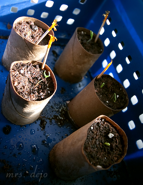 All of my seeds are officially germinated! Time to leave the ugly blue basket and into the sun…