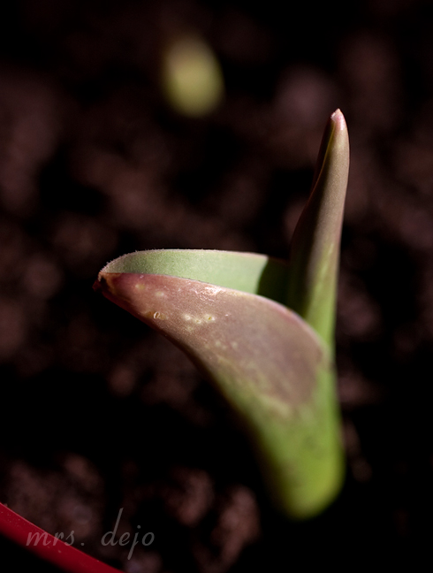 I have about ten tulips peaking out of their containers so far…