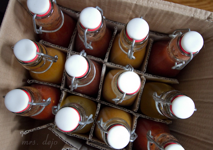 The bride made hot sauce for party favors for the reception. One problem, everyone who flew couldn’t get them back; so they all rode home with us. One of ours is almost gone… so so good. My husband put it on spaghetti.