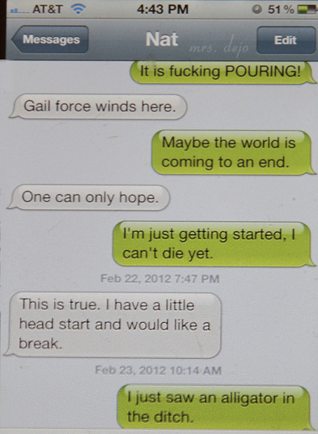 We didn’t eat so well on the way home, Cracker Barrel and DQ, I felt like such shite when I got home… In my defense, I haven’t had a chicken fried steak in a thousand years. I’m convinced they don’t even have white gravy in New England. Fascist bastards!