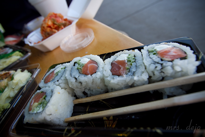 My usual; philly roll with regular salmon instead of smoked. Better when eaten outside… (Like most food.)
