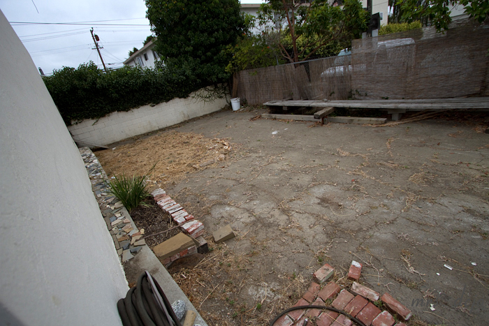 The back yard: holy shit… It resembles the rougher parts of Camden, NJ, but it’s space, and it will be beautiful someday… Enough room for me to garden and J to have an outside dojo of his very own. It’s also completely fenced in for Wynn. The sun position for gardening is perfect; all the wood I need to build beds is already back there (once I get the landlords to ok that I can use it).