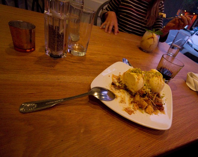 This beautiful Mediterranean meal was waiting for me when I finally got done cleaning the apartment the night before we left. James was down the block eating with Michelle…