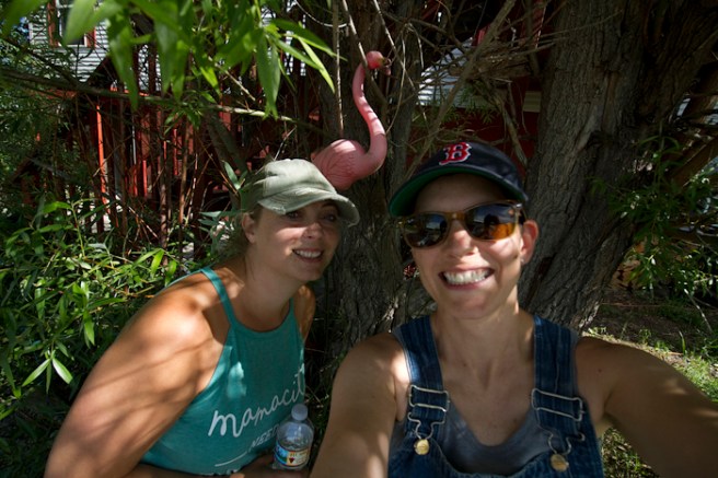 One of the original 14 pink flamingos we stole in high school that started it all. We find one every once in a while in a random spot out at her parents place. When her parents were building their house, they used them to mark the property lines. It made us giggle. We were such shits.